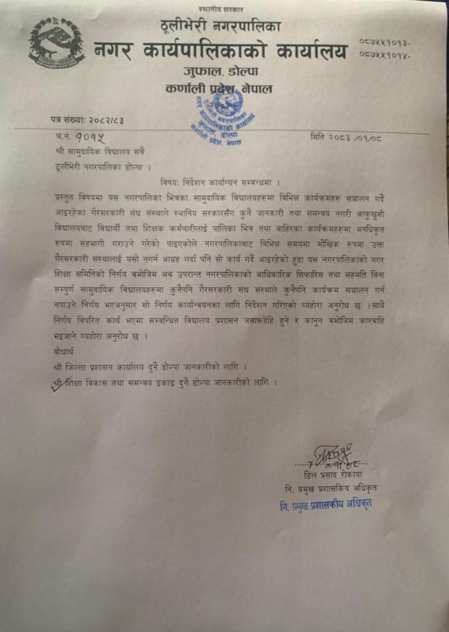 निर्देशन कार्यन्वयन सम्बन्धमा ।